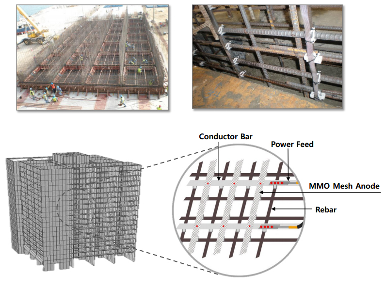 Mesh Anode is composed of a precious metal oxide catalyst sintered to an expanded Titanium mesh substrate(ASTM B265 Gr1 or 2). The Ribbon Mesh anode is used as a key component in the Cathodic Protection of reinforced concrete structures.